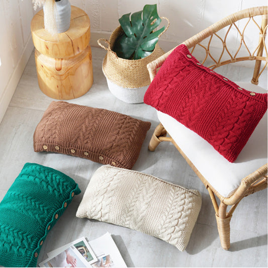 冬季裡,家裡的抱枕套也換上溫暖的毛線吧!粗毛線麻花編織的紋路讓沙發看起來更溫暖,更像屬於自己的角落了。