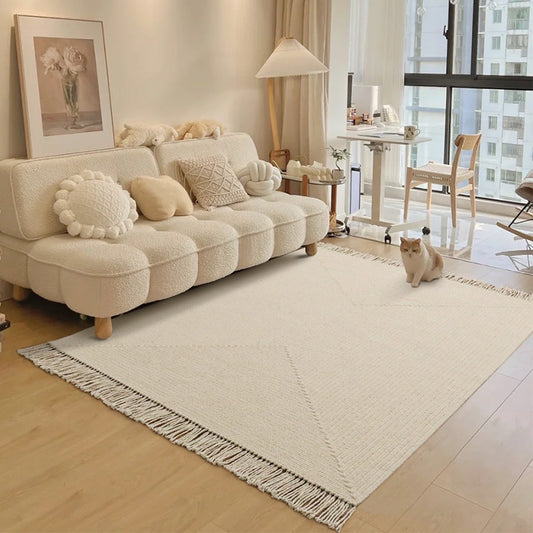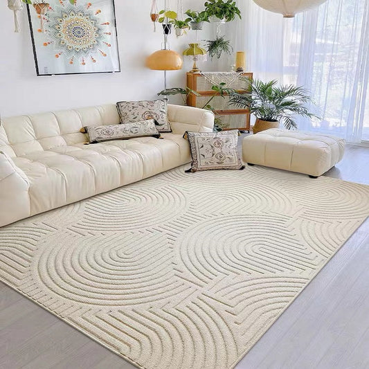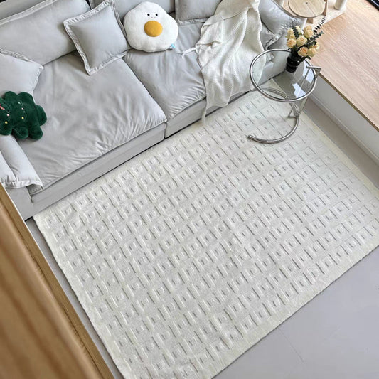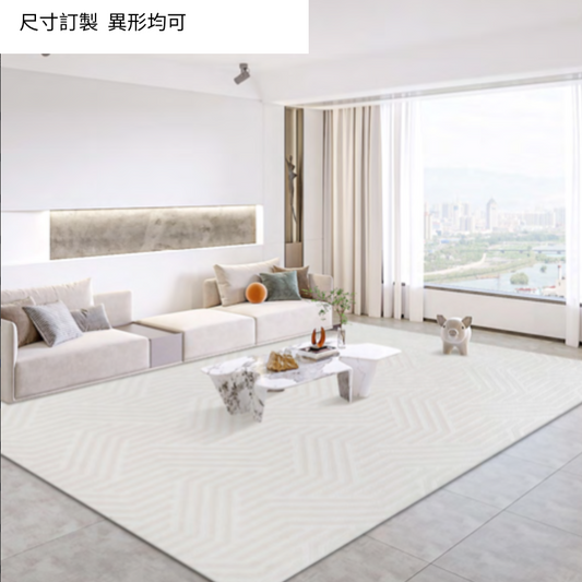 白色地毯能為室內空間注入明亮和寬敞的感覺,它能夠反射光線,使空間更顯明亮。這款立體絨面白色地毯採用簡單重複圖形設計、立體絨面工藝,賦予地毯高級視覺感。使用18mm厚度的結實用料,提供柔軟的踩踏感,讓您的腳步更加輕盈舒適。 您可以放心坐在地板上,也可以悠閒的光腳踩踏。無論您想要裝飾起居室、臥室、書房還是辦公室,白色地毯都能夠提升整個空間的氛圍和美感。