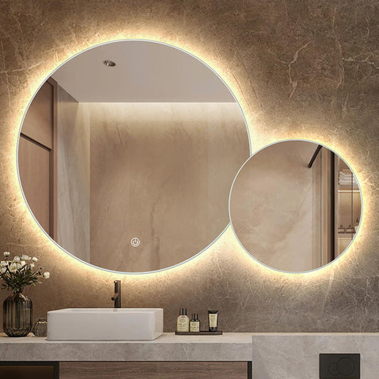 基本材質:鏡子,5mm高清無銅銀鏡 無框鏡邊緣圓滑手感好:全制動化切割圓角,自動技術反覆打磨、多次拋光 設計:雙圓形不規則造型鏡,可調光燈鏡,帶除霧功能。 懸掛方式:背面固定掛片,螺絲釘牆後,鏡子懸掛。背後掛片出貨後就無法拆卸或移動位置。 光效:背面發光,新型光學燈罩包覆LED燈帶,光效更均勻 調光款式:可選單色白光亮度調整型,或冷暖色溫調整型(冷-中性-暖光)。 防爆膜:碎裂不易飞溅 電子除霧膜 觸摸式一鍵開關:觸摸開燈、再按開啟防霧,長按調白光亮度或冷暖色溫、再按關閉 頁面三種尺寸:80+40cm(安裝尺寸115cm),90+45cm(安裝尺寸130cm),100+50cm(安裝尺寸145cm) 尺寸可訂製 購買出貨注意 接電方式可以直接插插頭(明線),或接暗線(需牆面有出線口預留)。 每一件鏡子出貨都有保麗龍,雙層瓦楞紙箱,並有木架保護出貨。 鏡子收到貨當天請檢查包裝是否有破損,到貨後超過3天內(打木架商品7日內)確認商品有無破損,如果運輸造成的破損我們會補發,請注意超過期限反應破損恕無法進行免責售後喔。其餘細節請參考退貨政策...