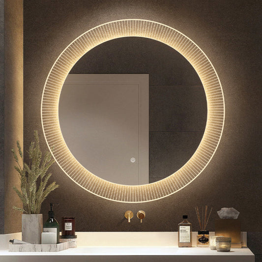 基本材質:無框鏡,5mm高清無銅銀鏡,更透亮,成像清楚。 鏡片防腐蝕處理,使用壽命更長更耐用。。 無框鏡邊緣圓滑手感好:全制動化切割圓角,自動技術反覆打磨、多次拋光 防爆膜設計:碎鏡最大程度避免碎鏡飛濺, 款式:無框鏡(不帶燈不帶除霧)、白光+除霧、暖光+除霧。固定亮度。 暖光色溫:3000K。白光色溫:6000K。如果需要改中性光(4000K)單色光,可以下單時通知客服備註更改。 尺寸:選項尺寸為圓形最大的直徑,下放鏡切範圍為50cm切5(橫切面寬度30cm),60cm切6(橫切面寬度36cm),70cm切7(橫切面寬度42cm),80cm切8(橫切面寬度48cm),90cm切9(橫切面寬度54cm),100cm切10(橫切面寬度60cm) 帶燈款光源:LED低壓安全燈帶:防水等級IP66,12V工作電壓,照度7-8LM,功率4.8W/m。高顯色,無頻閃,低光衰。 鏡背發光,燈光效果從鏡後投射到牆面後反射,效果柔和。 鏡面觸碰開關,一鍵多控:觸摸開燈、再按除霧(開關變藍色) 可訂製:尺寸與功能可訂製(改可調色溫、顯示時間),切口方向可改右、改左,可改無鏡面觸碰開關。請聯繫客服詢問報價與交期 購買出貨注意 每一件鏡子出貨都有保麗龍,雙層瓦楞紙箱,外層打木架出貨(木架按實際商品而定)。 台灣電壓110V適用,燈鏡款出貨默認帶插頭,收到可直接插上插座。如要自接按線,剪掉插頭接上家中預留線路即可。 鏡子收到貨當天請檢查包裝是否有破損,到貨後超過3天內(打木架商品7日內)確認商品有無破損,如果運輸造成的破損我們會補發,請注意超過期限反應破損恕無法進行免責售後喔。其餘細節請參考退貨政策...