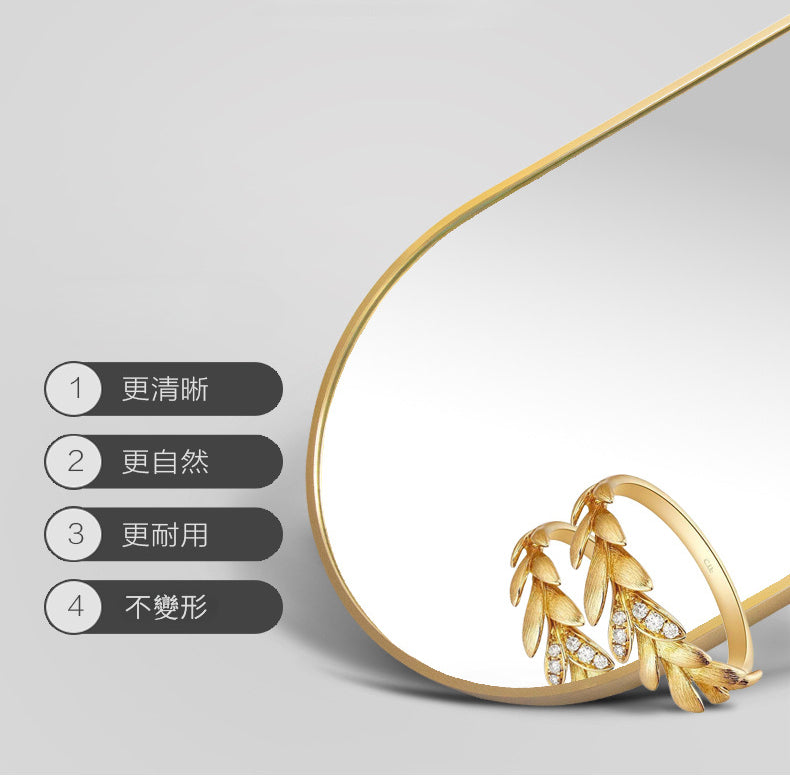 這款橢圓型鋁框掛鏡,背面配置可折疊選擇設計支架、鏡子可拉長伸縮,也可以調整角度。
