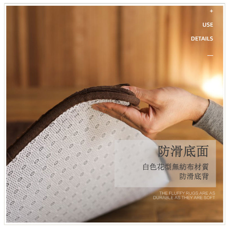 - 無紡布底背,不傷害地板,水洗不傷害毯背。