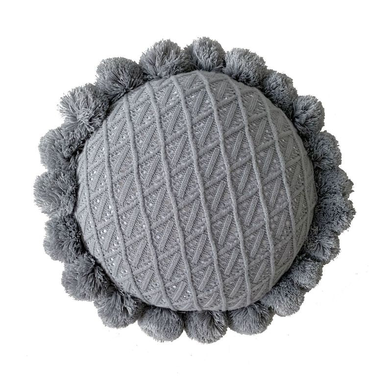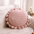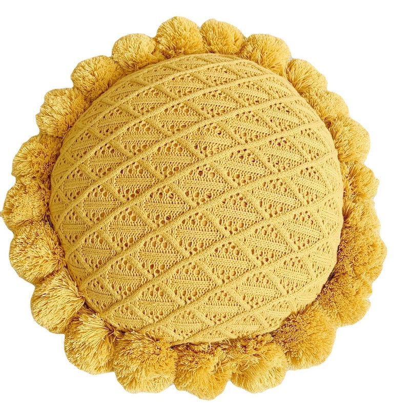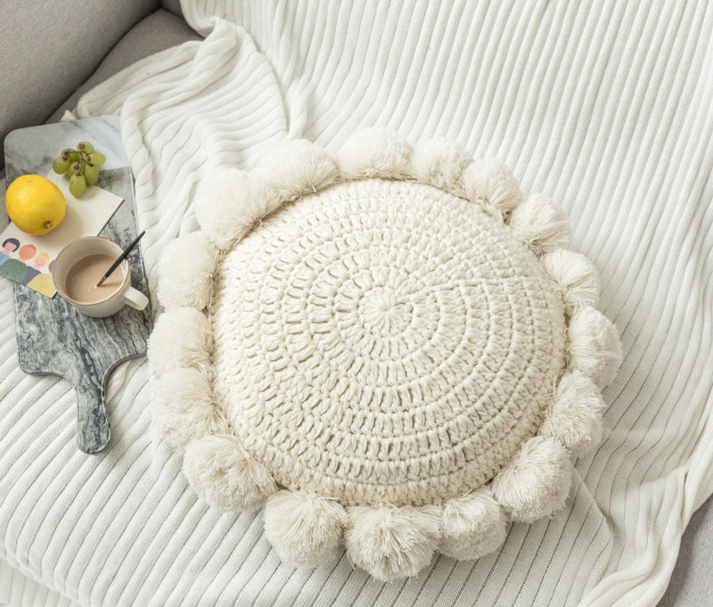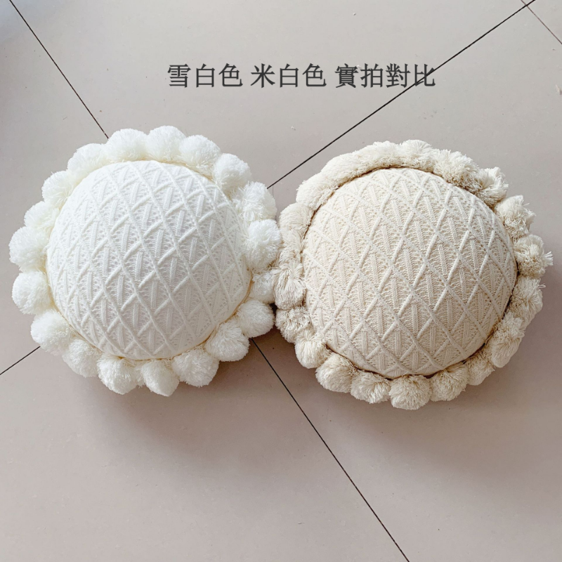 - 絨球是直接以毛線編織在針織抱枕上,不容易脫落。