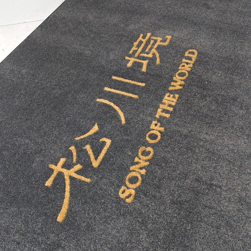 • 本款地毯訂製logo使用刻花鑲嵌方式製作,部分圖案或字體邊緣,因切割工藝與地毯絨毛特性,豎立的絨毛根部切除後,可能無法完全填滿字體邊緣而露出黑底情況(參見照片),較多彎曲、尖尾字體logo建議使用尼龍印花商業地墊、或商用除沙吸水防滑丙綸入門地墊