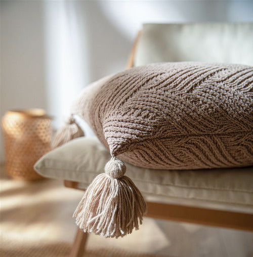 - 從抱枕四角延伸繼續編織而成,牢固不容易掉線。