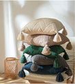 - 四角燈籠形飽滿絨球,約拳頭大小,與抱枕同色。