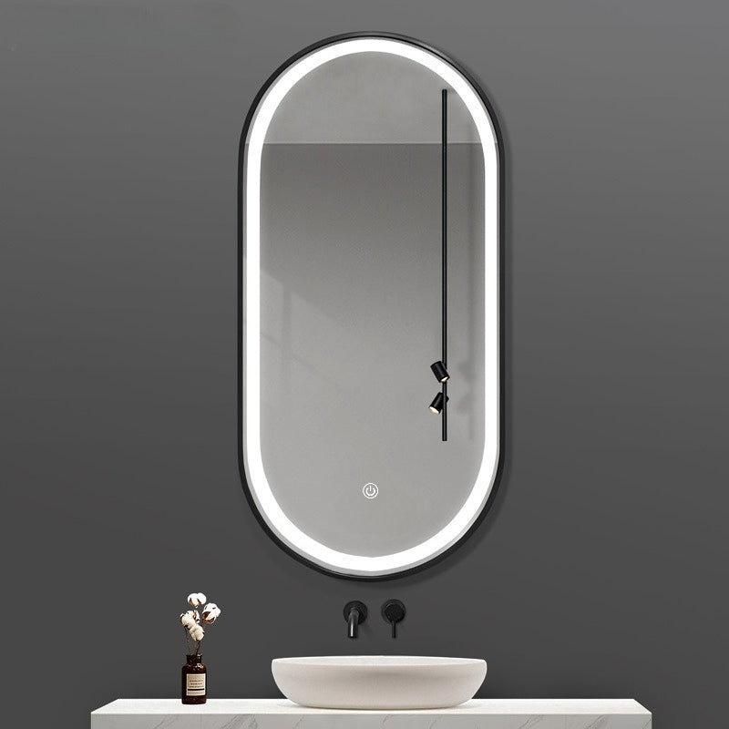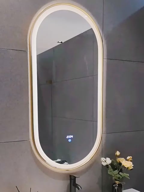 橢圓鋁框正面磨砂透光浴室燈鏡