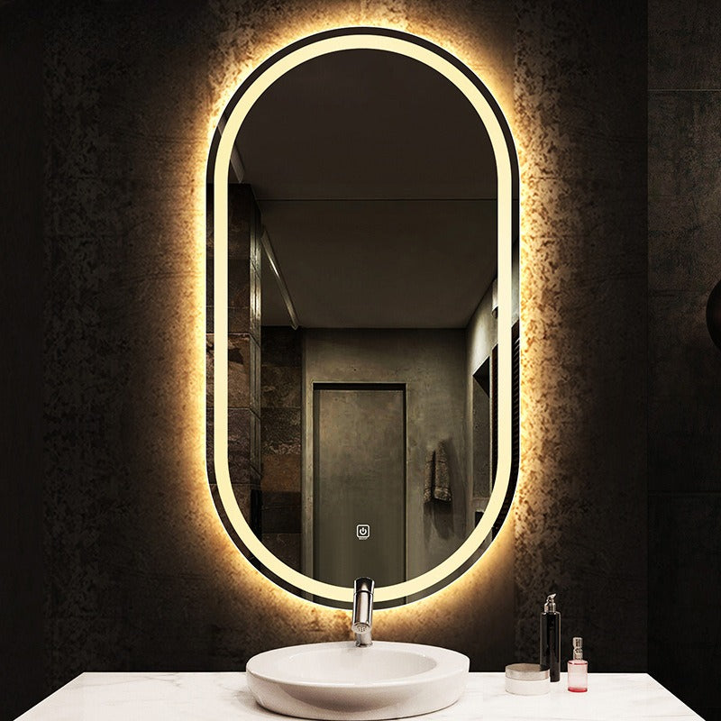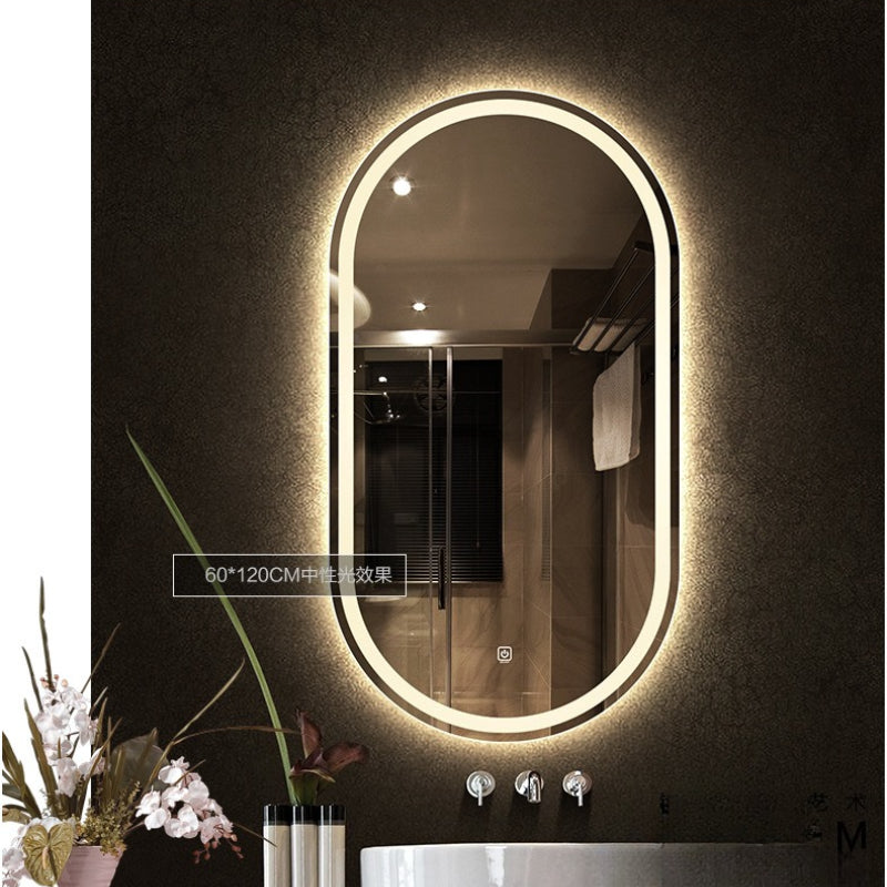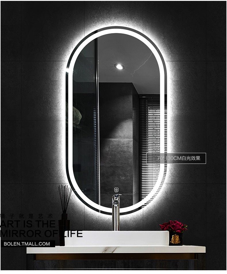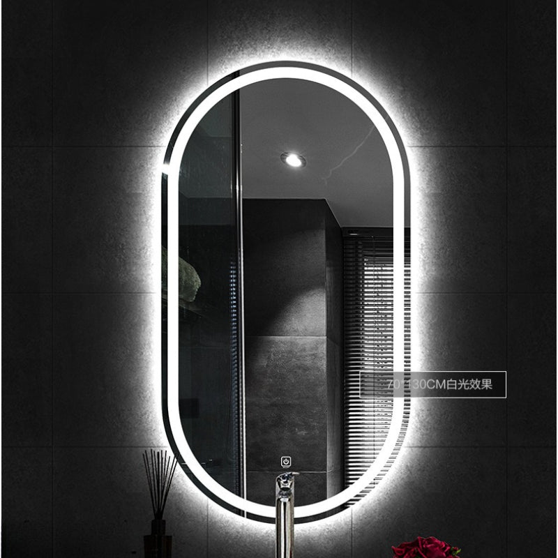 橢圓無框正面磨砂透光壁掛浴室智能燈鏡
