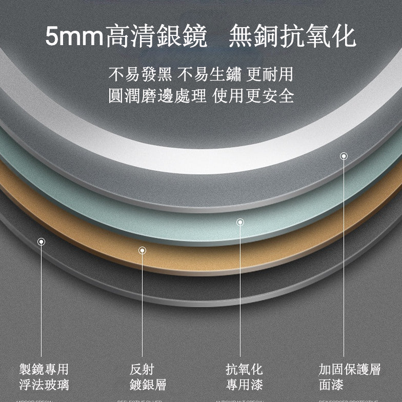 • 基本材質:浮法玻璃,5mm無銅銀鏡