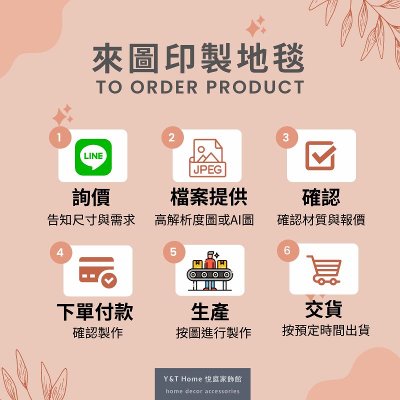 - 按客戶圖案、尺寸,以植絨材質製作地毯