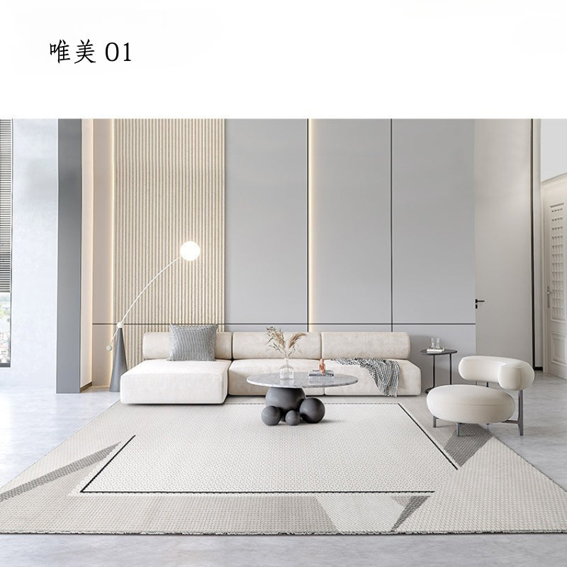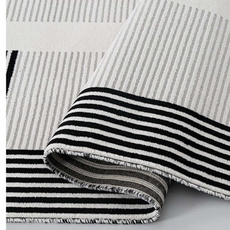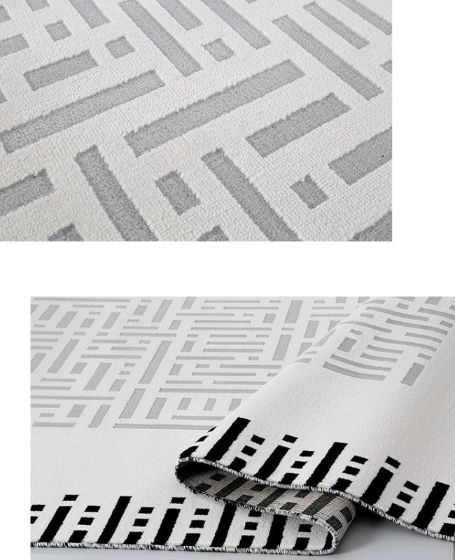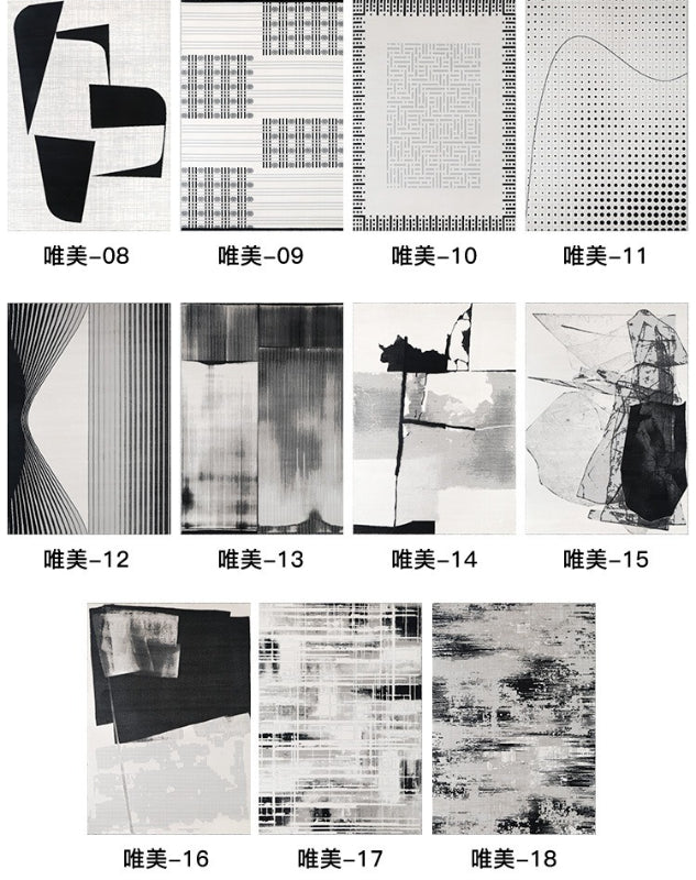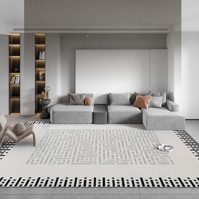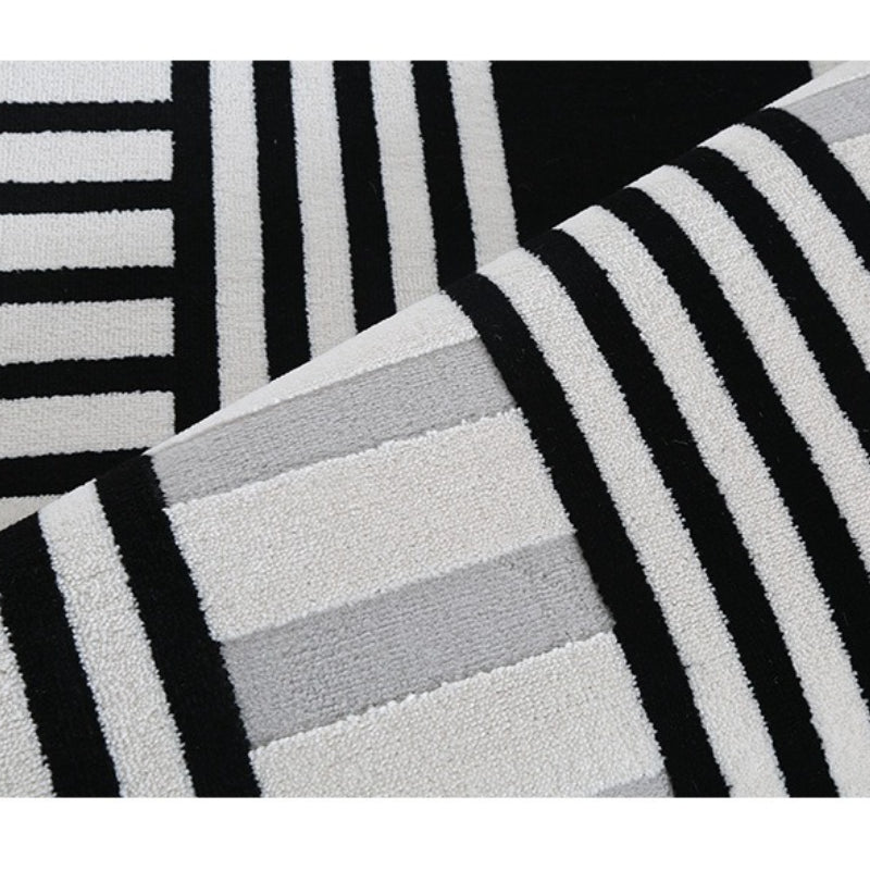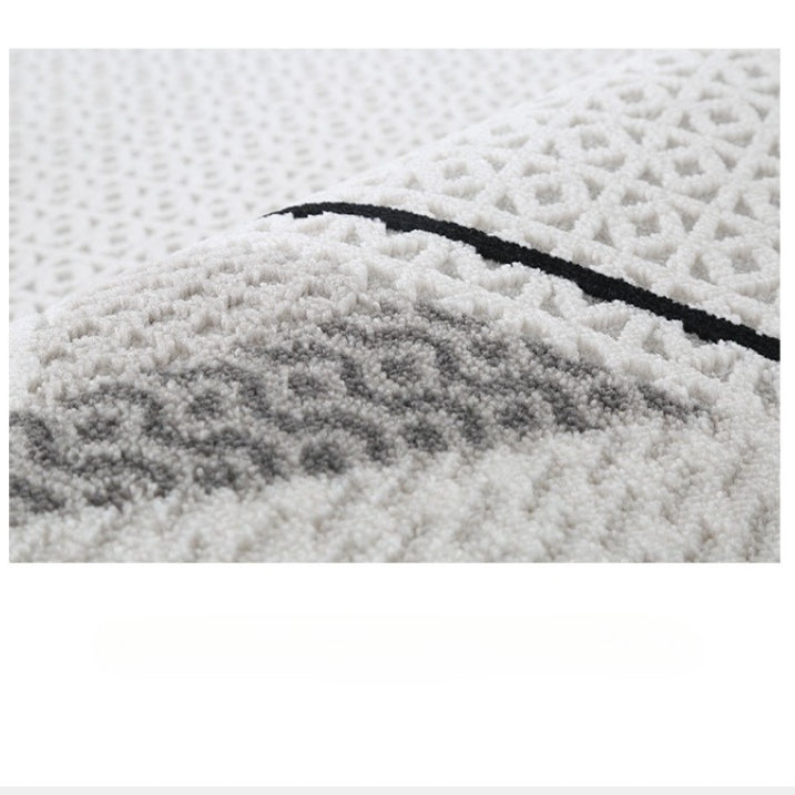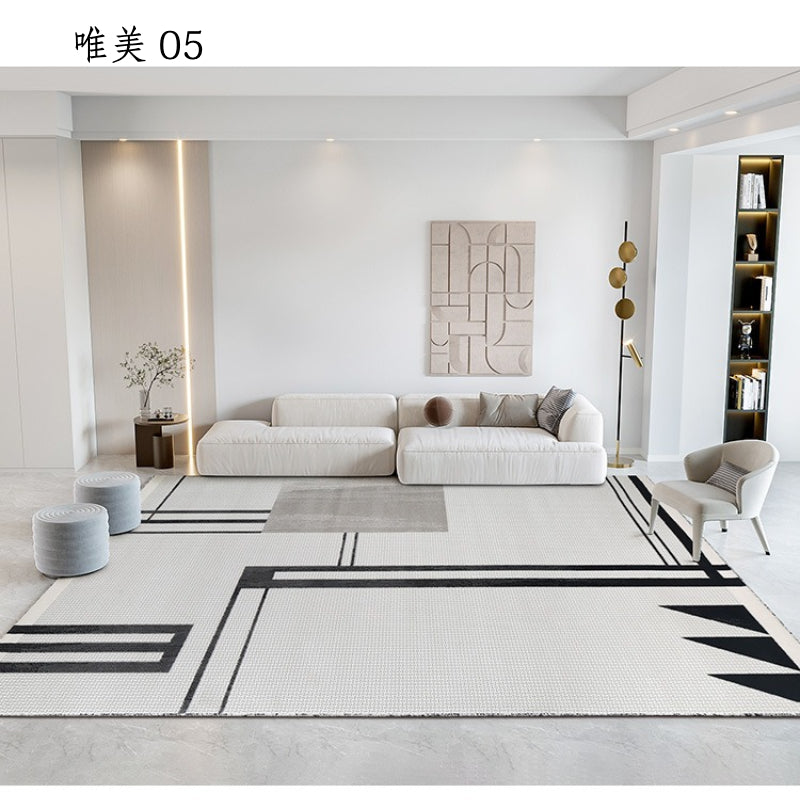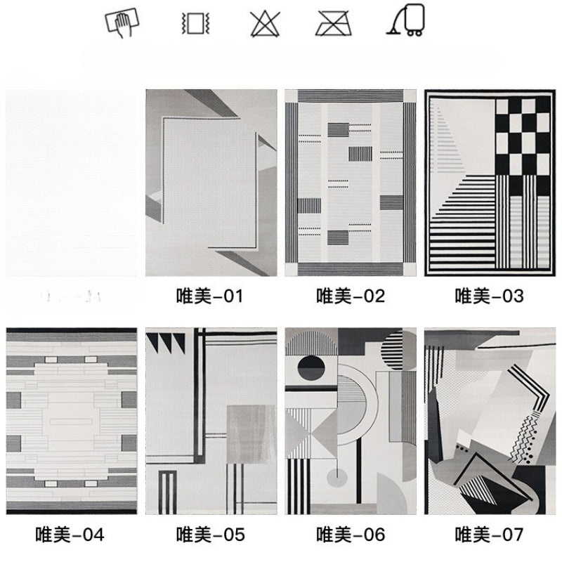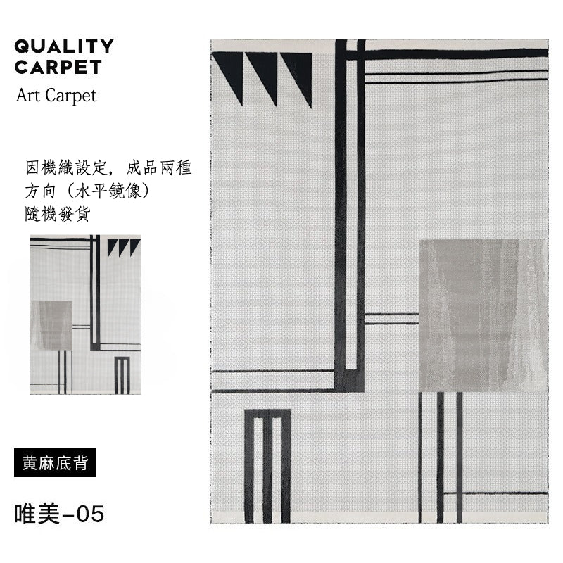 • 黑、灰色系線條、幾何設計,低飽和底色,線毯簡約、具藝術感不失格調,