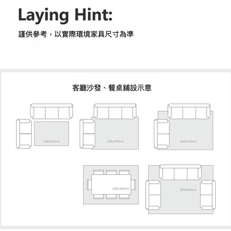 • 本款商品不可訂製,建議選擇相近尺寸,請參考 如何選擇地毯尺寸