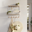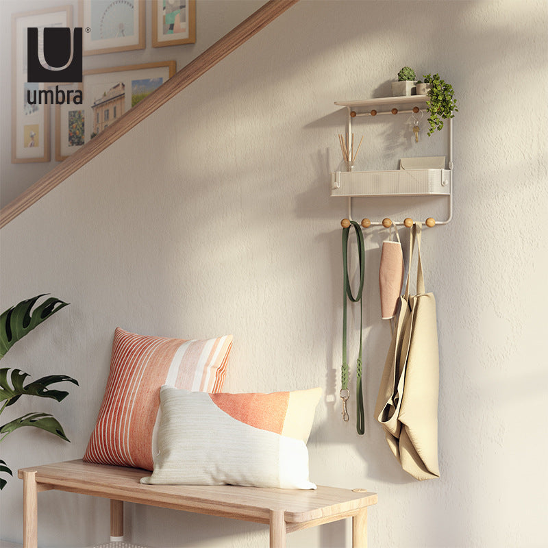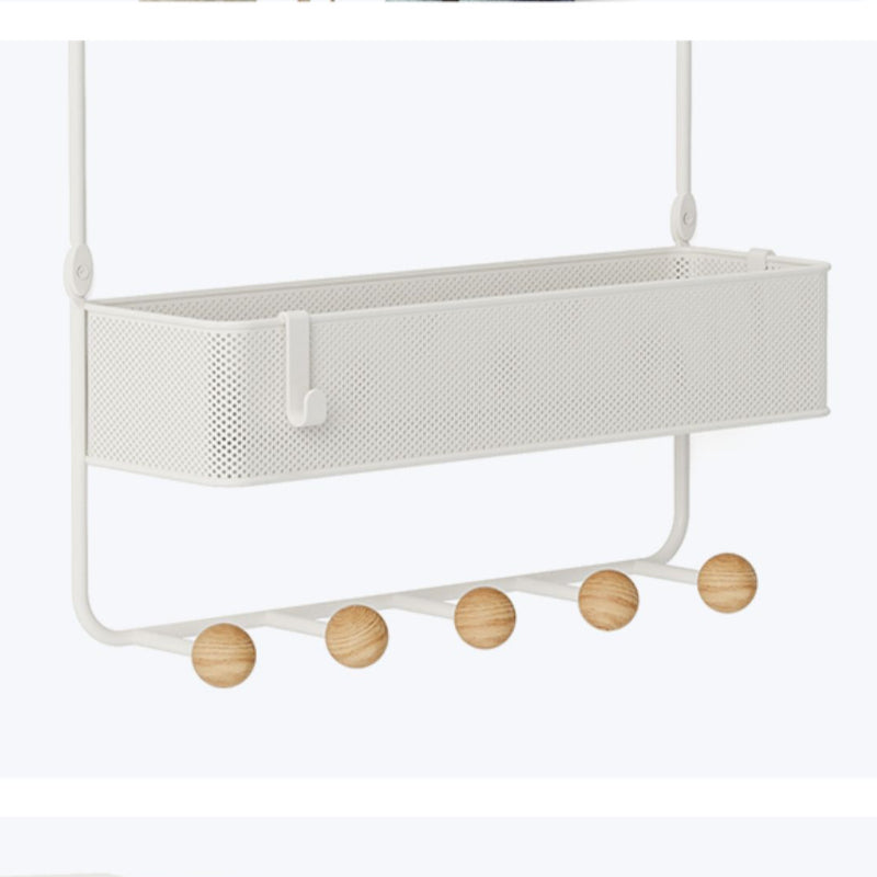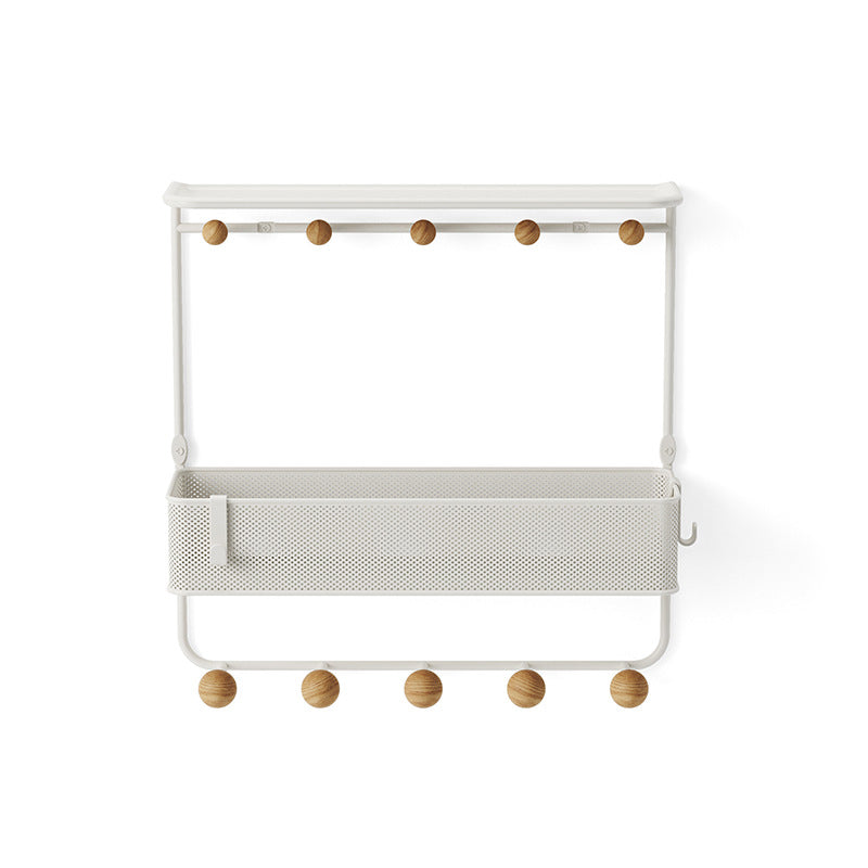 - 上層置物平面架、單排5個鑰匙小掛勾、下排5個衣帽大掛鉤、單層置物籃(附兩個S形勾)、